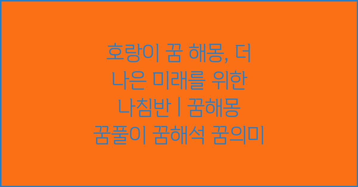 꿈은 우리의 무의식과 감정을 표현하는 특별한 매체입니다. 그중에서도 호랑이는 강력한 상징을 지니고 있습니다. 오늘은 호랑이 꿈 해몽에 대해 이야기해 보려고 합니다. 호랑이 꿈 해몽: 성공과 행복을 위한 길잡이 | 꿈해몽 꿈풀이 꿈해석 꿈의미는 많은 이들에게 희망과 통찰력을 줍니다. 우리 각자의 꿈은 그 자체로 의미가 있으며, 그 속에는 미래에 대한 길잡이가 숨어 있습니다.