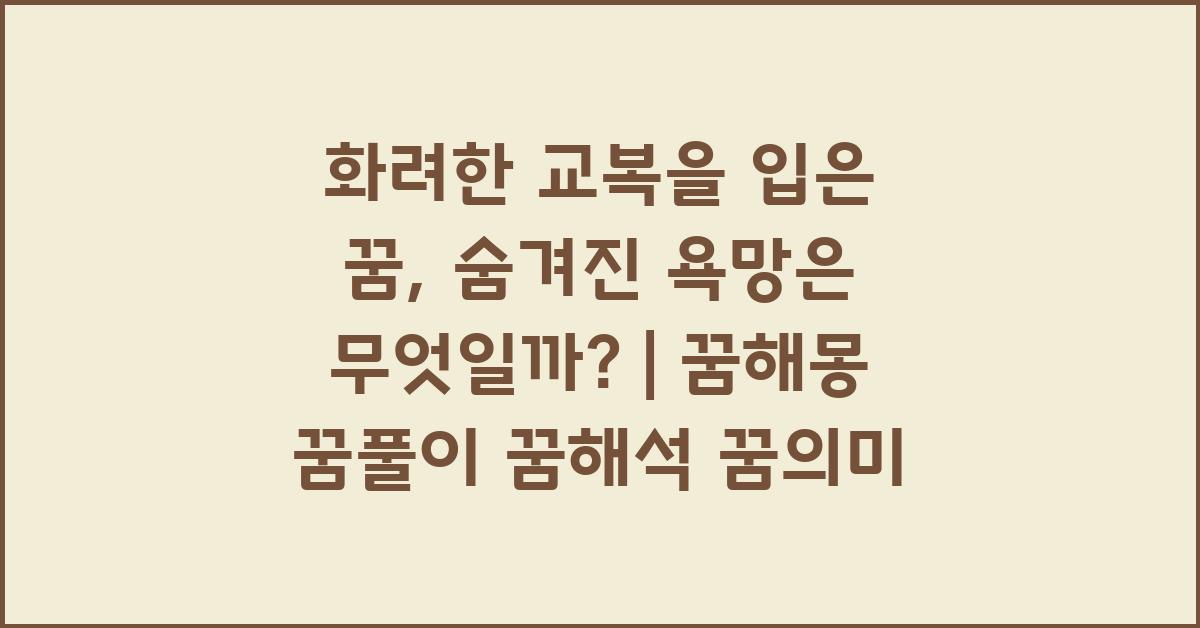 교복이 주는 안정감과 그 안에서의 자신감은 많은 이들에게 긍정적인 상징으로 여겨집니다. 그러나 어떤 이는 화려한 교복 자체가 다른 사람들에게 보여주고 싶은 나의 모습, 즉 나의 강한 욕망을 반영하는 것으로 볼 수 있습니다. 그래서 화려한 교복을 입은 꿈은 자신이 원하는 삶의 모습을 나타내는 강력한 이미지일 수 있습니다. 이 꿈을 통해 자신이 추구하는 것들을 다시 한번 생각해보는 기회가 될 것입니다.