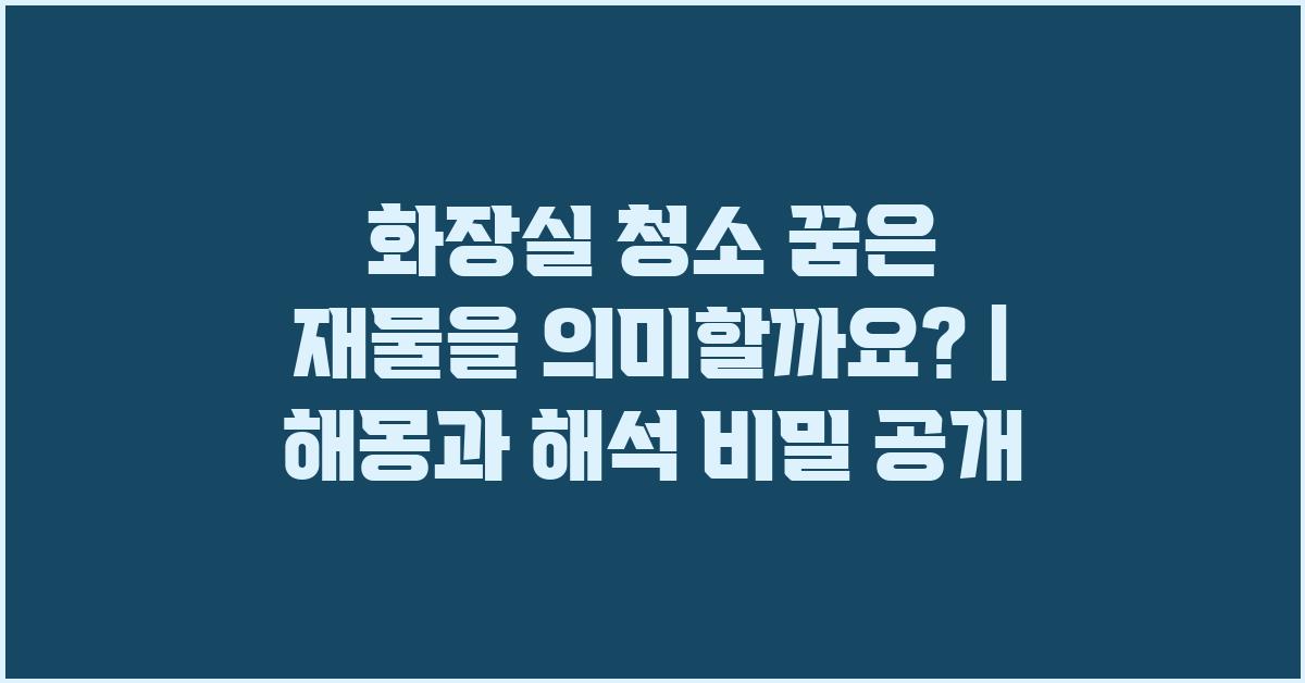 ✨ 재물의 상징으로서의 화장실 청소 꿈